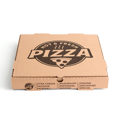 Choose from mottled white or 100% recycled kraft corrugated cardboard for your pizza box base, then add that professional touch that leaves a lasting impression.